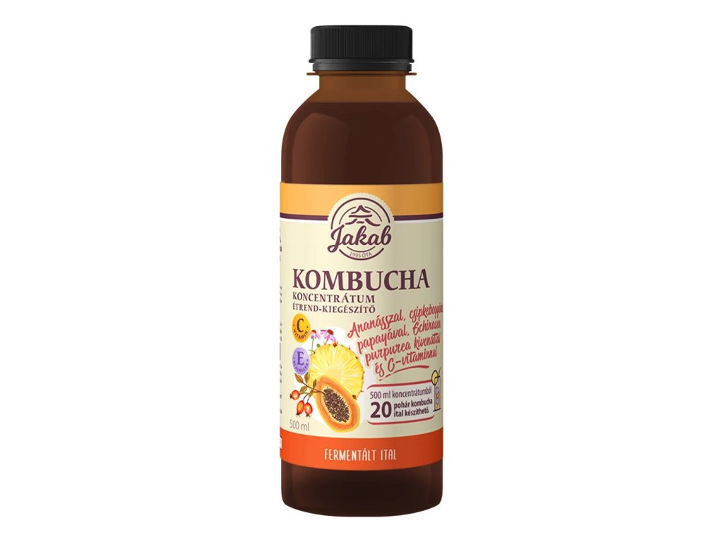 A C-vitamin hozzájárul a szervezet természetes védekező rendszerének működéséhez, az egészséges immunrendszerhez. Az Echinacea: Az Immunrendszer Királynője Az Echinacea, más néven a csodás kengyelvirág, nem csupán egy gyönyörű látvány, hanem a természet egyedülálló ajándéka az emberi egészség számára. Évszázadok óta használják gyógynövényként, és a modern kutatások is egyre inkább felfedezik a benne rejlő lenyűgöző hatásokat az immunrendszer erősítésében. 1. Immunrendszer támogatás: Az Echinacea kiemelkedik az immunrendszer támogatásában. Aktív vegyületei elősegítik a fehérvérsejtek termelődését, melyek az első vonalban harcolnak a kórokozók ellen. Ezáltal segít megerősíteni a szervezet védekezőképességét, és csökkenti a betegségekkel való találkozás esélyét. 2. Gyulladáscsökkentés: Az Echinacea híres gyulladáscsökkentő hatásáról is. Aktív komponensei enyhítik az irritációt és a duzzanatot, ami különösen hasznos lehet például légúti fertőzések vagy nátha esetén. 3. Vírusellenes tulajdonságok: A növénynek olyan tulajdonságai vannak, amelyek hatékonyan képesek gátolni vírusok terjedését a szervezetben. Ezáltal csökkenthető a fertőzések súlyossága és időtartama. 4. Sejtvédelem: Az Echinacea antioxidáns tulajdonságokkal is rendelkezik, melyek segítenek megvédeni a sejteket a szabadgyökök káros hatásaitól. Ezáltal hozzájárulhat az öregedési folyamatok lassításához és az egészséges sejtműködés fenntartásához. 5. Stresszkezelés: Az Echinacea nem csak a testet, de a lelket is támogatja. Klinikai vizsgálatok szerint segíthet csökkenteni a stresszhormonok szintjét, ezzel hozzájárulva a pszichés jólét javulásához. Az Echinacea növény varázsa tehát sokkal több, mint amit a felszín mutat. Természetes erejével és lenyűgöző hatásaival méltán érdemel helyet a gyógynövények királynői között. Az Echinacea a természet egyik kincse, amelyre érdemes támaszkodni prevenciókor, az egészségünk megőrzése érdekében. Nettó térfogat: 500 ml Palackjaink PBA mentesek! Összetevők: kombucha koncentrátum (víz, cukor, fekete tea, kombucha gomba), növényi glicerin, I00%-os ananászlé, csipkebogyó hús, ananász aroma, L-aszkorbinsav, zöld papaya levél, Echinacea purpurea kivonat Alkoholtartalom: max. 1,5% (V/V) Felhasználási útmutató: naponta 1-3 alkalommal 3 evőkanál (25 ml) koncentrátum 2 dl folyadékkal hígítva fogyasztható. Hígítási arány: 1:8 500 ml koncentrátumból 4,5 l kombucha ital készíthető. Felbontás után hűtőben tárolva 20 napig fogyasztható!